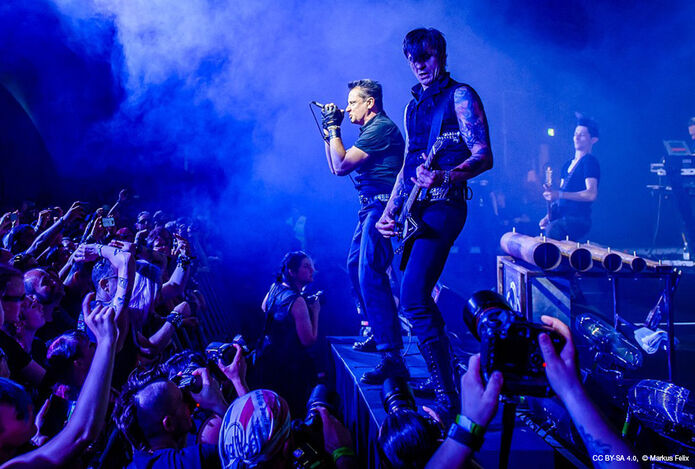EBM är elektronisk kroppsmusik. Som namnet antyder kännetecknas den av elektronisk musik. Den är vanligtvis ganska aggressiv och består av sånger som påminner om militärövningar. På jargongen kallas detta "skrikande". I verkligheten känns det som att bli utskälld. Oftast är dock "sången" elektroniskt förvrängd och smälter in i den dansanta rytmen. Genrens föregångare är band som Front242 och Nitzer Ebb, som fortfarande uppträder på festivaler. Den ursprungliga fanbasen bestod av skinheads, punkare och huliganer. Stämningen på konserterna var lika aggressiv som själva musiken. Kanske är det därför som EBM-företrädarna huvudsakligen samlade en manlig publik runt sig.